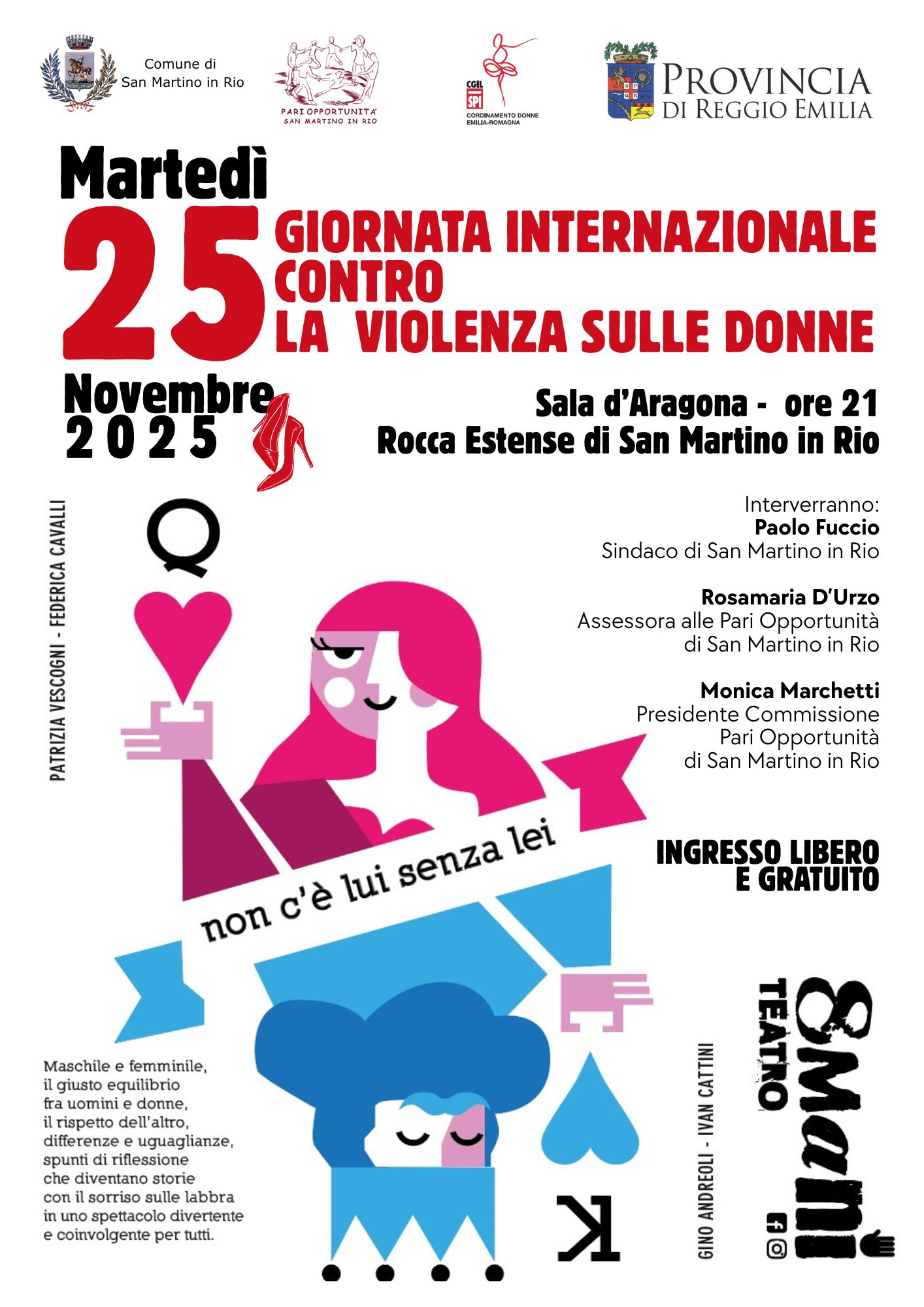 L’iniziativa propone una riflessione sul tema della violenza di genere attraverso il linguaggio dell’ironia e del teatro.