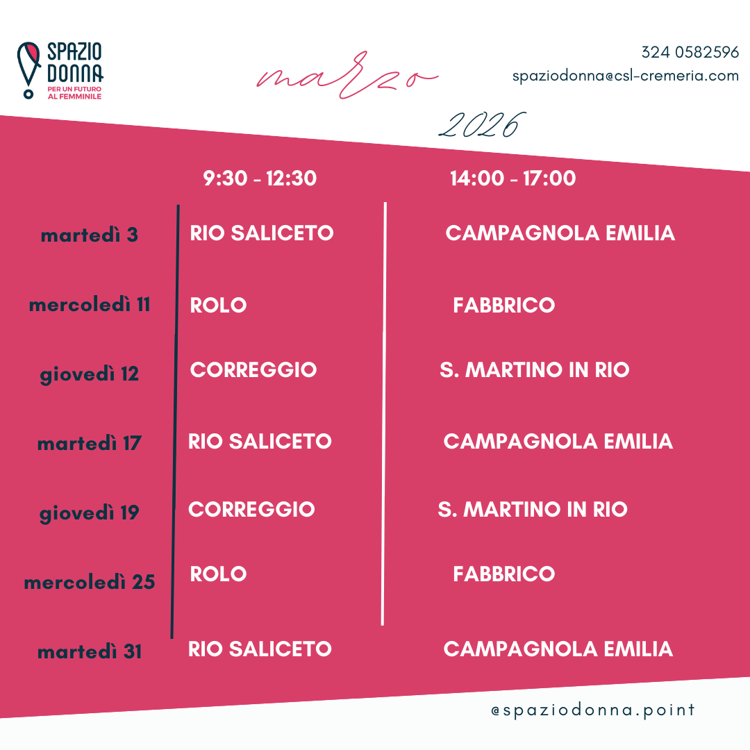 Si comunicano le giornate di apertura dello sportello Spazio Donna del mese di Marzo.